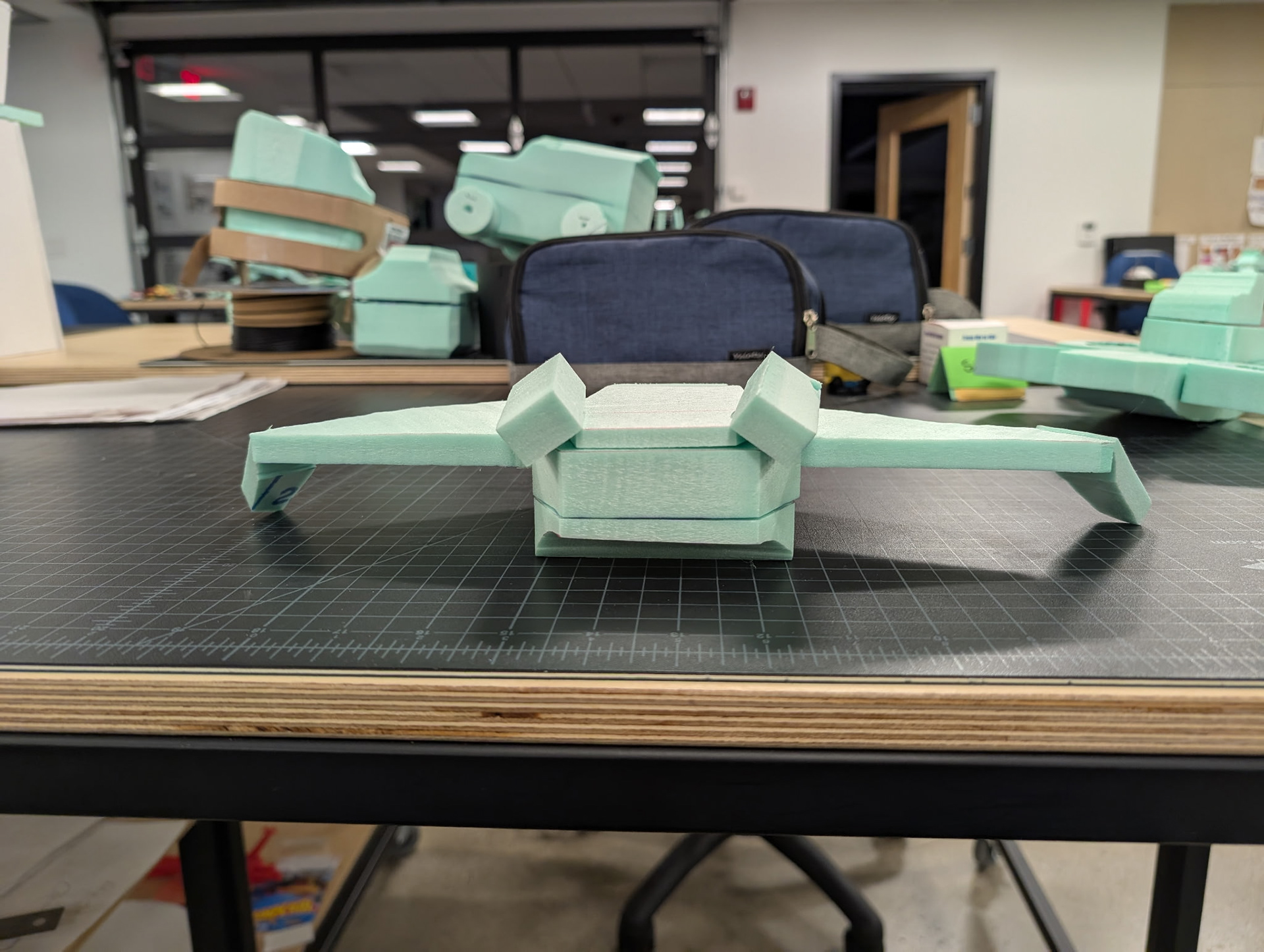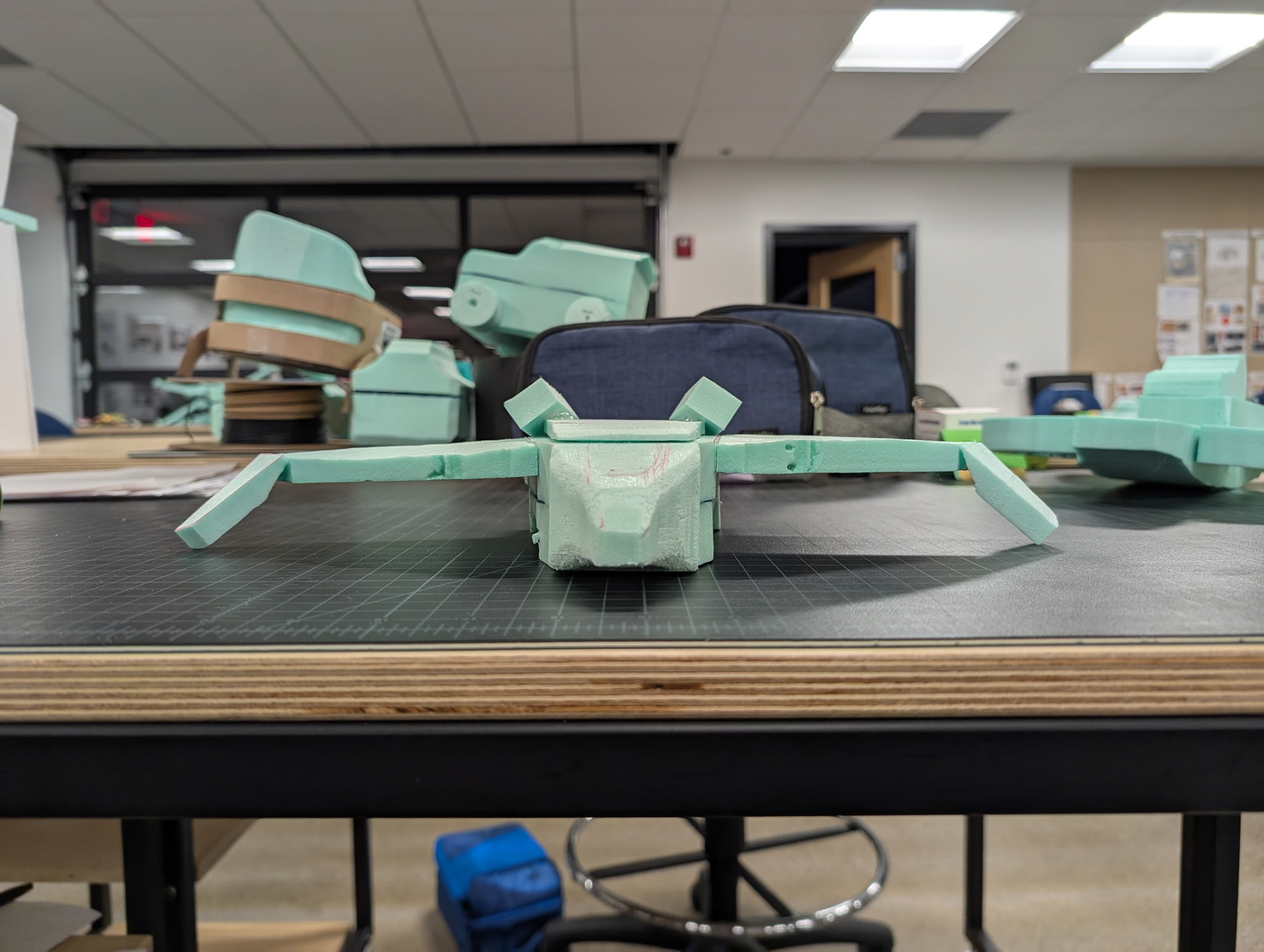 The Sketches are turned into rough 1:1 foam core models to test the size and proportion in physical 3D space